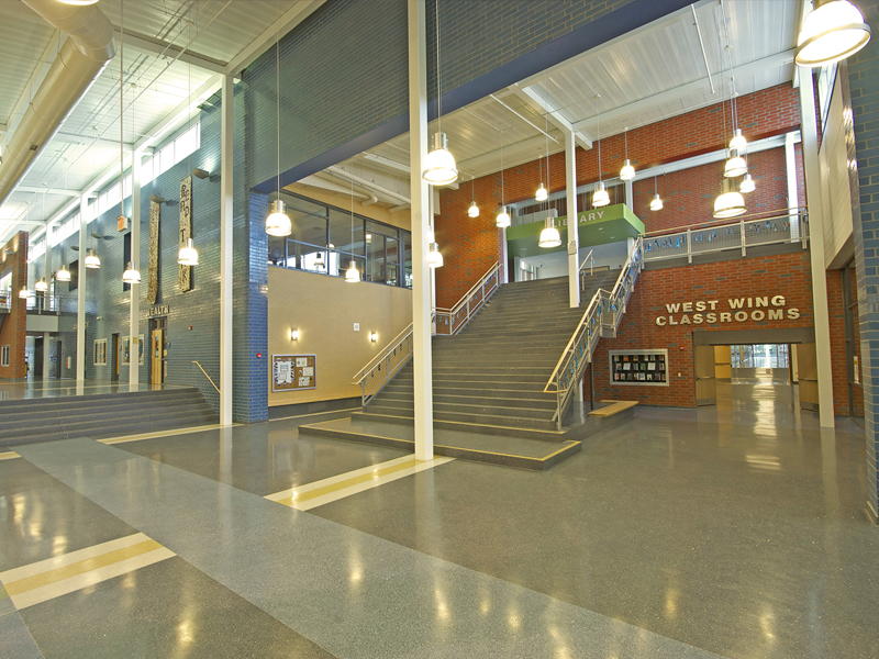 Midd-West High School is a 192,500 SF replacement high school constructed on the site of the existing school. The project was phased to allow continuous operation of the school. Challenges included Indoor Air Quality Management during construction. Over a 30 Year Life Span of the building it is anticipated that the sustainable design components will save approximately $3,500,000 in utility costs. The school will be used as a teaching tool and will be available to the community for use after hours.